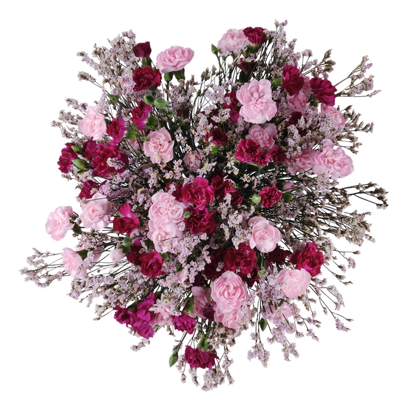 „Z nutą goździka” to bukiet, który nie potrzebuje wielkich ozdobników – wystarczą goździki gałązkowe i kilka naturalnych dodatków, by wywołać uśmiech.
